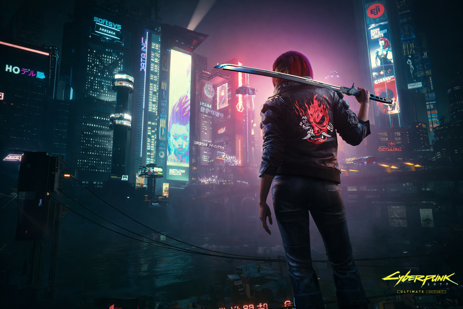 Download this breathtaking Cyberpunk 2077 4K wallpaper featuring Female V overlooking the neon skyline of Night City. With cinematic lighting, futuristic cityscapes, and a striking katana pose, this ultra HD background captures the essence of Cyberpunk 2077’s dystopian aesthetic. Perfect for PC, desktop, and gaming setups, this high-resolution wallpaper is ideal for fans of CD Projekt Red’s iconic cyberpunk universe.